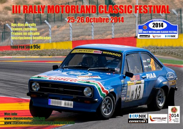 Ya faltan pocos días para la disputa del III Rally Motorland Classic Festival, si aún no está inscrito os animamos a hacerlo. Se trata de una prueba de dos días con un bonito recorrido por carreteras aragonesas, tramos abiertos inéditos, cerrados dentro de los circuitos de Motorland, reagrupamiento en Alcañiz, paso por el circuito urbano de Guadalope, tandas gratuitas al trazado GP, y todo por el módico precio de 90 €.